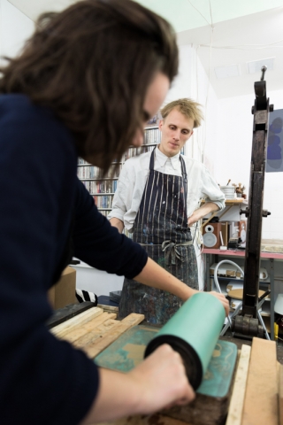 Tous les weekends, Alice Gauthier, de l’atelier Crocolitho, propose des stages de lithographie sur pierre, une technique d’impression à partir de la surface d’une pierre ou d’une plaque préparée avec des outils de dessin gras (crayons, encre, etc.). La lithographie permet une traduction très directe du dessin et elle offre une grande variété de textures et des combinaisons de couleurs par superposition.